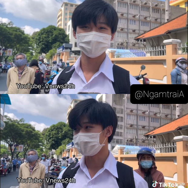 Mới đây, trên kênh YouTube Vnews24h có xuất hiện một đoạn phỏng vấn ghi nhận tình hình thi cử môn Ngữ văn của các sĩ tử. Trong số các nhân vật được phỏng vấn xuất hiện một cậu bạn cực xinh trai dù chỉ lộ một nửa khuôn mặt. Với đôi mắt cười rất sáng và thông minh cùng mái tóc thư sinh, cậu bạn này lập tức gây bão mạng xã hội.