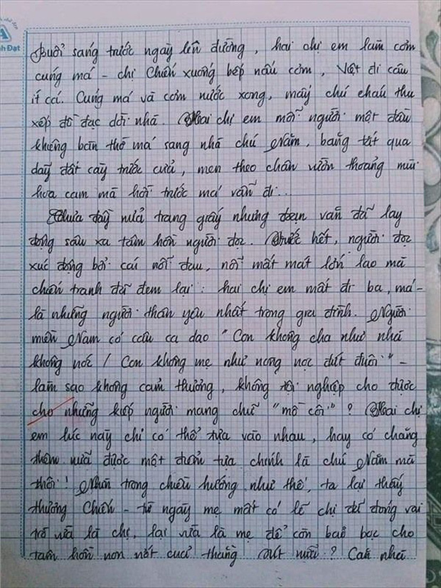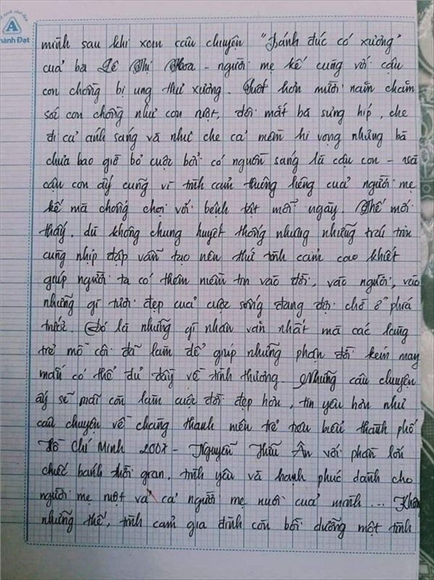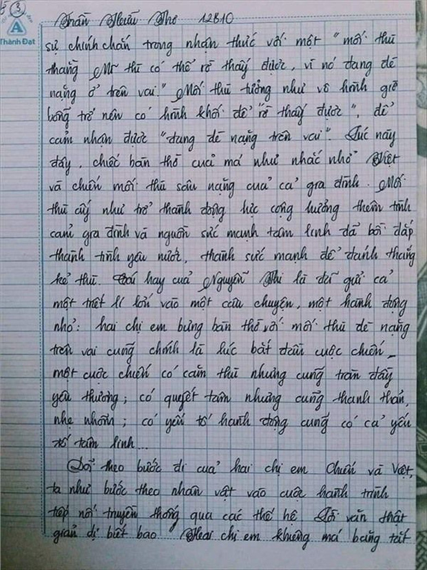 Đề bài yêu cầu nêu cảm nhận về một đoạn trích trong tác phẩm "Những đứa con trong gia đình" của Nguyễn Thi, từ đó rút ra suy nghĩ của mình về vai trò của gia đình trong cuộc sống hiện nay. Với khả năng cảm thụ văn học trời phú của mình, Hữu Thơ đã khiến không khỏi shock khi viết hẳn 18 trang giấy, điều đáng nói là trang văn nào cũng trình bày sạch đẹp.