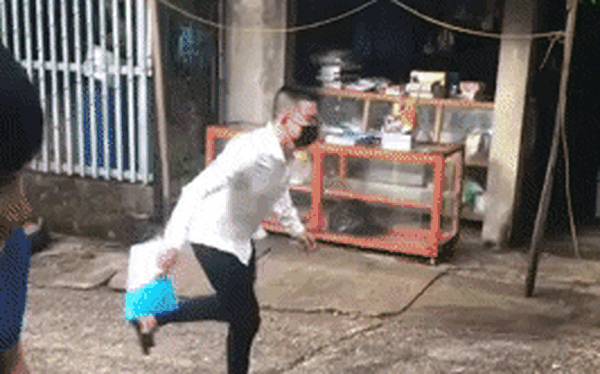 Vì quá vội, cậu bạn chạy đến nỗi trượt luôn cuốn atlat ra khỏi tay, sau đó vì quá bất ngờ và đang đà chạy, cậu bạn phải dừng lại gấp khiến chiếc dép cũng bay đi theo, riêng anh chàng thì chúi hết người về phía trước. May mắn là nam sinh đã dùng tay đỡ kịp để khỏi bị ngã chỏng vó. Gặp tình huống trớ trêu này, dù đang trễ nhưng chính sĩ tử cũng không nhịn được cười.