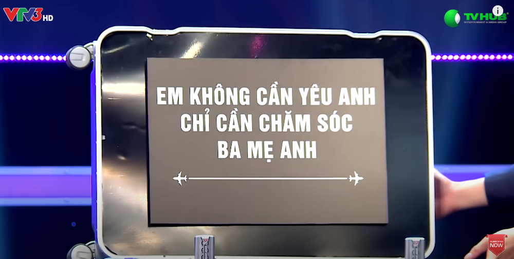 Bí mật trong vali được anh chàng mang tới chương trình "Hành lý tình yêu" trở thành cú nổ lớn. Cả trường quay như "đứng hình" khi đọc dòng chữ phía trong: "Em không cần yêu anh, chỉ cần chăm sóc ba mẹ anh".