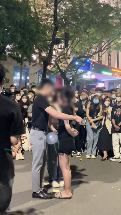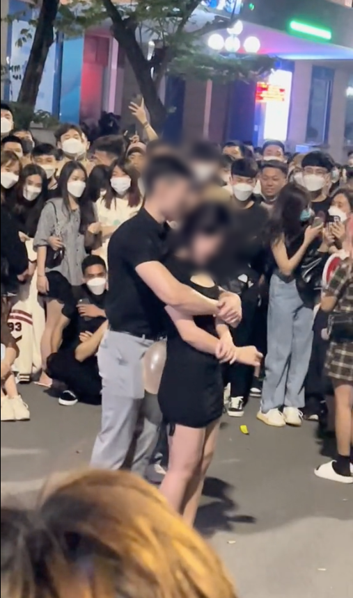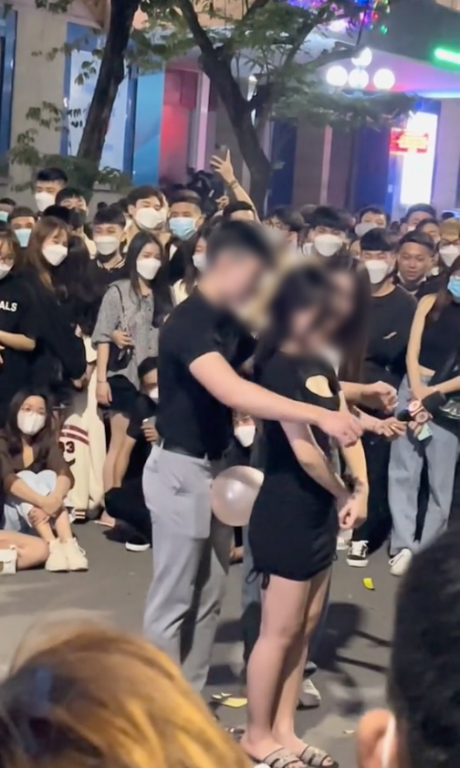 Theo đoạn clip cho thấy, 2 người gồm 1 trai, 1 gái đang tham gia một trò chơi tại phố đi bộ đông người. Điều đáng nói, trò chơi 2 người này tham gia có động tác khá nhạy cảm.