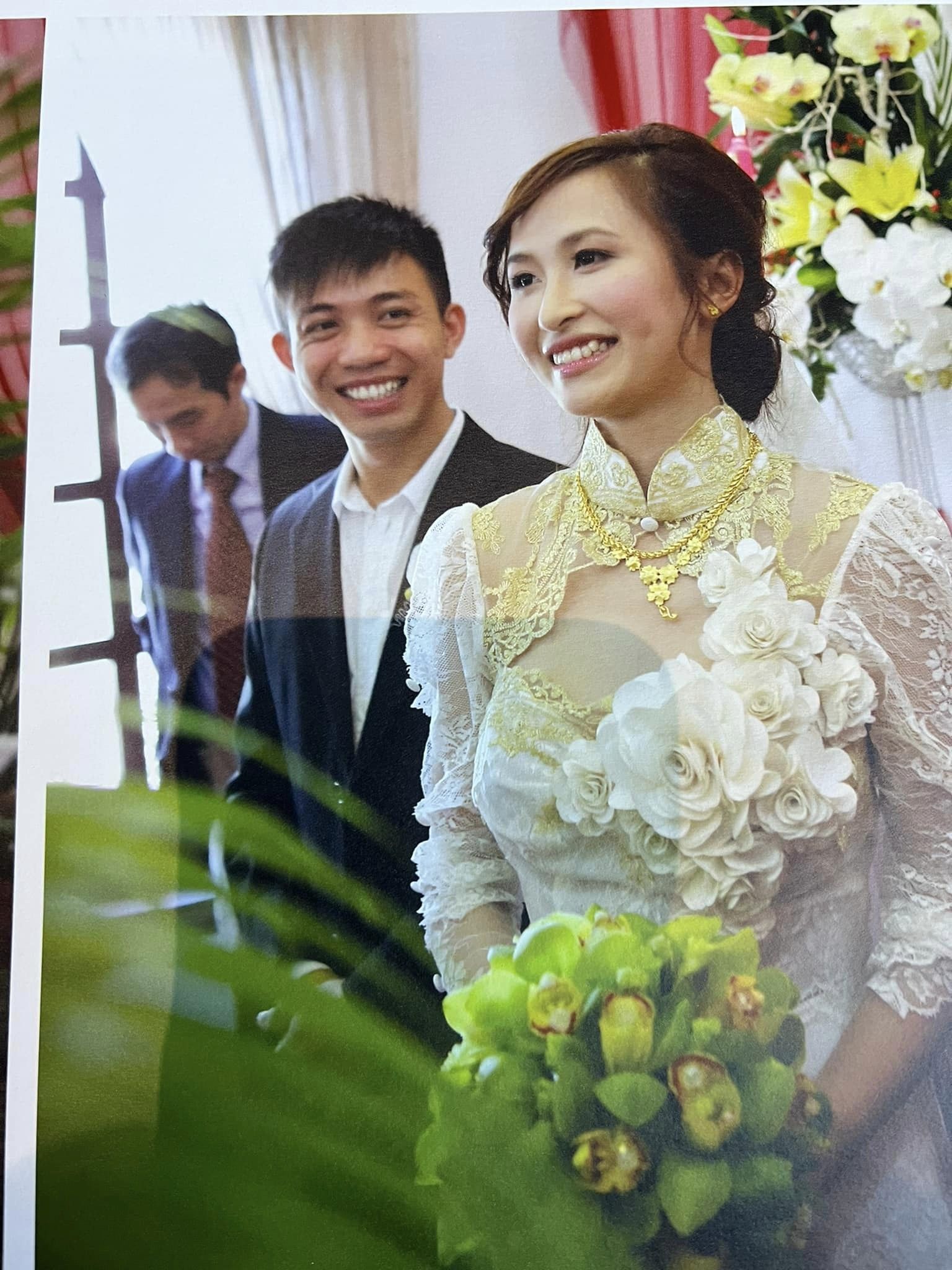 Trong ngày trọng đại 12 năm trước, vợ chồng Minh Nhựa và Mina Phạm chọn phong cách đơn giản, không cầu kỳ và càng không dát vàng như đám cưới của nhiều hào môn bây giờ. Mina Phạm mặc áo dài cách điệu, đeo một ít quà cưới là dây chuyền và lắc vàng, được chồng tặng nhẫn cưới kim cương. Về phần mình, Minh Nhựa mặc vest cưới màu đen bình thường, không thắt cavat hay đeo nơ.