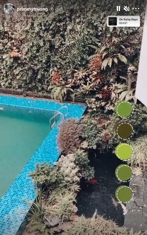 2 vợ chồng Primmy Trương đều khá kín tiếng sau đám cưới cổ tích, mãi mới đây cô nàng mới chịu khoe ảnh chụp một góc bể cá nho nhỏ cạnh bể bơi siêu to ở phía sau ngôi biệt thự nhà Phan Thành. Chiếc bể bơi phủ đầy cỏ xanh xung quanh đã từng xuất hiện trên story của chàng thiếu gia vào mùa dịch năm ngoái, nên fan hâm mộ tin chắc Primmy Trương đang thảnh thơi tận hưởng những ngày cuối năm ở tổ ấm của 2 vợ chồng.