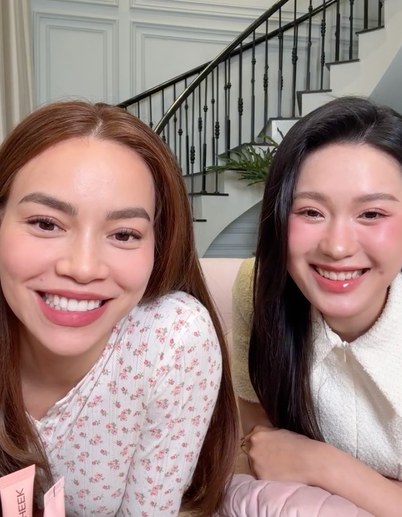 Bên cạnh Hà Hồ là Doãn Hải My – sinh năm 2001, vợ cầu thủ Đoàn Văn Hậu và từng được biết đến là thí sinh Top 10 Hoa hậu Việt Nam 2020. Doãn Hải My mang nét đẹp trẻ trung, thanh thoát. Ở tuổi 24, Hải My sở hữu làn da mịn màng, gương mặt phúc hậu cùng đôi mắt long lanh. Trong khung hình chung, cô chọn phong cách trang điểm tông hồng ngọt ngào, làm bật lên sự nữ tính và dịu dàng.