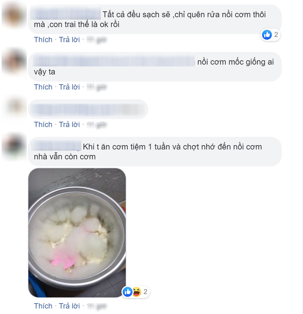 - Chắc nấu cơm mang cho người yêu xong đầu óc chỉ mải nghĩ về ẻm đây mà. Chứ bên ngoài nồi sạch như kia, con trai thế là cẩn thận lắm chứ đùa.