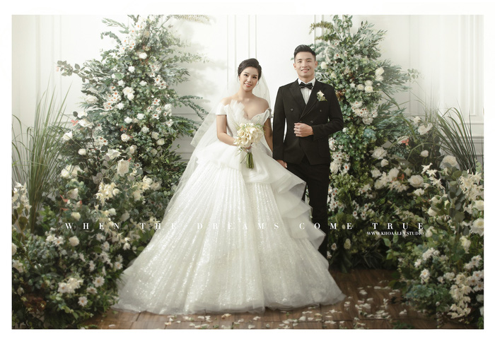 Tối 28/12, đơn vị chụp ảnh đã tung ra loạt ảnh cưới long lanh của trung vệ Bùi Tiến Dũng và bà xã Nguyễn Khánh Linh. Trong đó, nổi bật là 3 phong cách trang điểm giúp Khánh Linh đi từ thời thanh xuân với tóc dài buông xoã, đến khi trưởng thành xinh đẹp làm cô dâu và kiểu tóc búi gọn gàng của người phụ nữ gia đình.