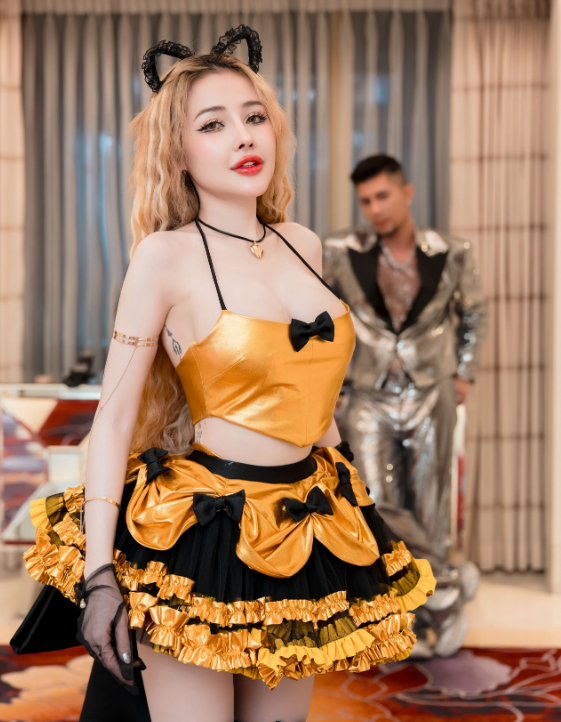 Mới đây, bà xã Lương Bằng Quang công khai hình ảnh gương mặt sưng tấy, mếu máo khóc lóc trên mạng xã hội. Nữ DJ chia sẻ lý do vì ăn hải sản quá nhiều: "Mấy tiếng nữa là lên sân bay đi sang Mỹ diễn vậy mà mặt mũi sưng. Vì trước đó 2 tiếng em có mua 2 kg ngao, cua Na Uy siêu gạch về để ăn. Vì em sợ sang Mỹ thèm nên ở Việt Nam phải ăn trước". Thậm chí, nhiều người còn cho rằng chiếc mũi của cô bị lệch rõ sau khi phẫu thuật thẩm mỹ.