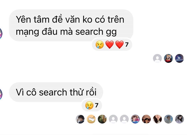 Để tăng thêm tính thuyết phục cô còn bồi thêm một câu "vì cô search thử rồi".