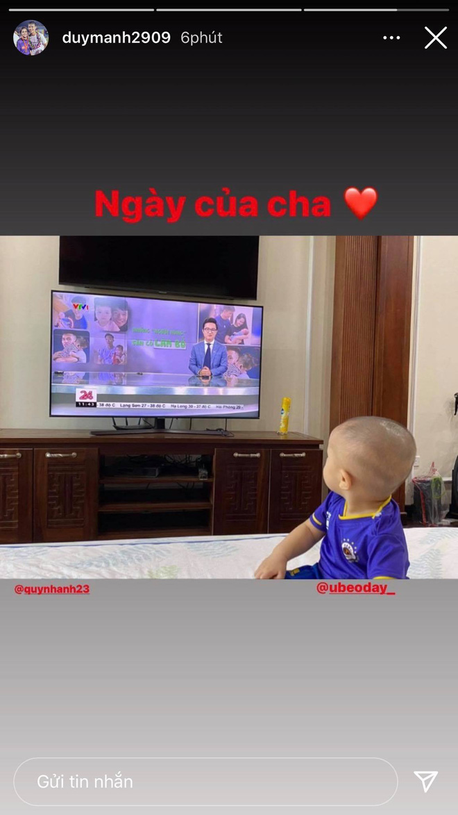 Đội trưởng Quế Ngọc Hải và trung vệ Bùi Tiến Dũng chia sẻ cảm giác hạnh phúc khi nhận được lời chúc mừng ngày của cha từ vợ và con gái.