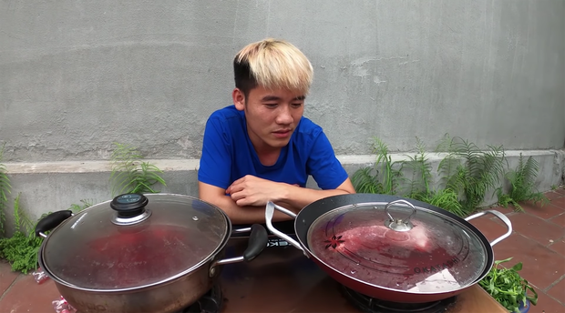 Trong clip mới đây, anh chàng lại bị tố là lãng phí khi dùng sting để nấu cơm, luộc rau và luộc thịt để troll cả nhà, Hưng Vlog đã bị tố là "lãng phí ngọc thực".