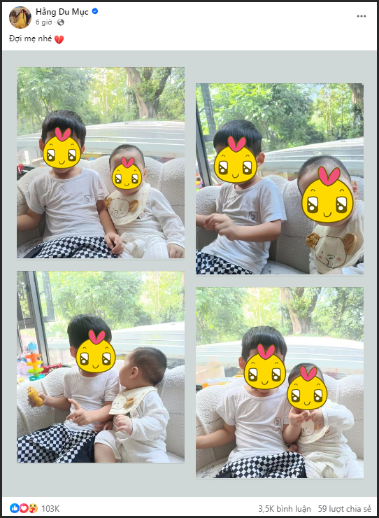 Về phần Hằng Du Mục, cô chưa có bất cứ chia sẻ nào về tin đồn này. Đến trưa 25/6, cô đăng ảnh 2 con nhỏ, đính kèm caption: “Đợi mẹ nhé” và icon trái tim vỡ đôi. Nhiều người cho rằng bài đăng của Hằng Du Mục ngầm thông báo cô vẫn chưa được gặp 2 con nhỏ và để lại vô số bình luận động viên. Chỉ sau 6 giờ đăng tải, chia sẻ của Hằng Du Mục đã có đến 103k lượt yêu thích.