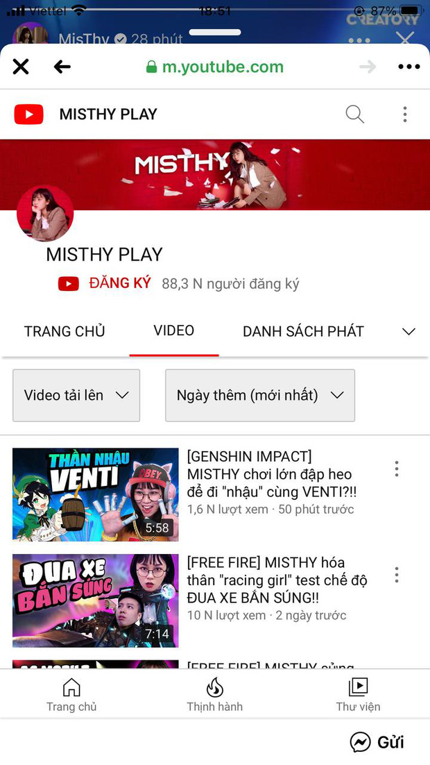 19/03/2021 15:00Nghi vấn kênh YouTube 6 triệu subs của MisThy đã bay màu, chính chủ có hành động mới gây bất ngờ