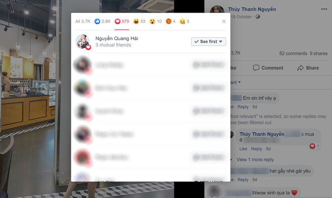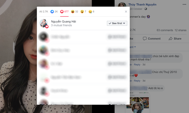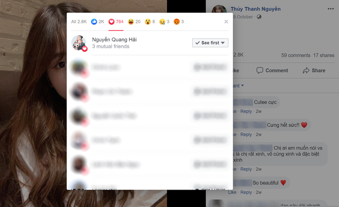 Lần theo dòng tương tác của hai nhân vật chính, người ta phát hiện từ tháng 8 cho đến nay, Quang Hải thả tim không sót ảnh nào Thanh Thủy. Trên Facebook, cả hai đã kết bạn và trên Instagram cũng follow đối phương. Đặc biệt, Quang Hải là cầu thủ duy nhất được Thanh Thủy nhấn nút theo dõi.