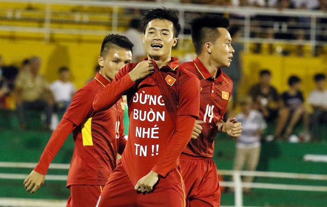 Nhìn qua thì có vẻ đây là lời động viên mà Tư Dũng dành cho bạn gái Văn Toàn về một sự việc không vui nào đó vừa xảy ra. Tuy nhiên trên thực tế, chàng trung vệ chỉ đang trêu chọc Trang Nhung mà thôi. Tiến Dũng hẳn đang có ý nhắc đến việc Văn Toàn từng ăn mừng bàn thắng bằng cách khoe chiếc áo có in dòng chữ "Đừng buồn nhé TN (Trang Nhung)" trong một cuộc đọ sức giữa U22 Việt Nam và U22 Macau 2 năm trước. Thời điểm đó, cầu thủ quê Hải Dương vẫn chưa chính thức công khai chuyện tình cảm với cô bạn gái xinh xắn nhưng cách thể hiện tình yêu "nửa kín nửa hở" này đã khiến Trang Nhung ngồi trên khán đài nở nụ cười mãn nguyện.