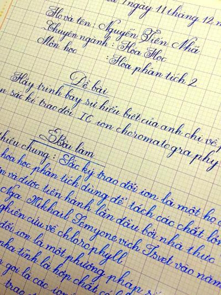 22/12/2015 21:15Ngỡ ngàng khả năng viết chữ đẹp như in của một sinh viên ngành Hoá học