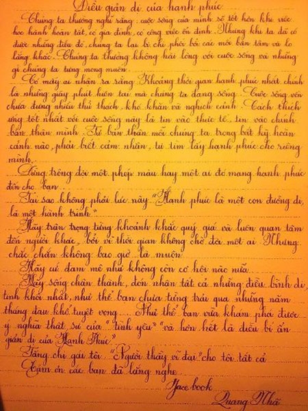 Theo Nhã, để có được nét chữ rõ ràng thì không quá khó, mọi người chỉ cần luyện tập trong một thời gian ngắn. Nhưng để sở hữu chữ đẹp, đều đặn lâu dài thì lại cần phải thường xuyên trau dồi và cố gắng viết càng nhiều càng tốt.