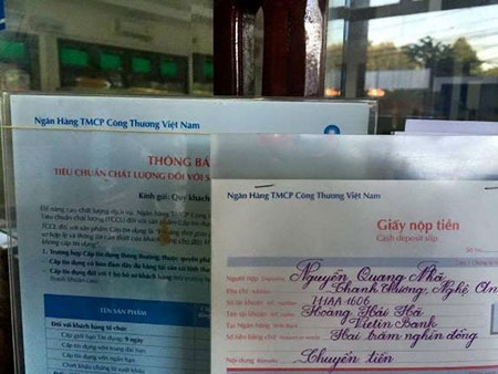 Tờ giấy của Nhã bất ngờ được Ngân hàng đưa lên làm mẫu |