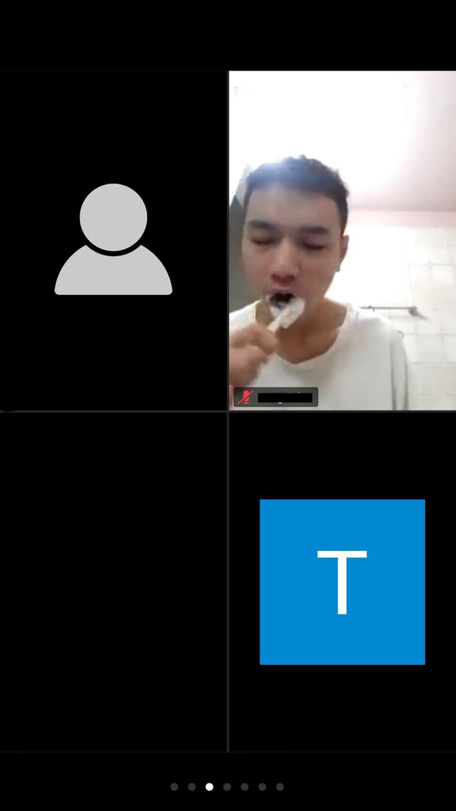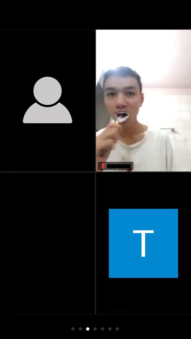 Mới đây, cộng đồng mạng đã được một phen "cười ra nước mắt" khi hình ảnh cậu học trò do ngủ quên, đã vội vàng tham gia lớp học trong khi thầy (cô) giáo đang giảng bài, tuy nhiên cậu bạn lại bật camera và để lộ mình đang vừa đánh răng, vừa nghe giảng (hoặc bị gọi phát biểu đúng lúc đang vệ sinh cá nhân).