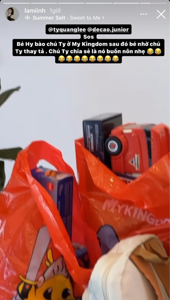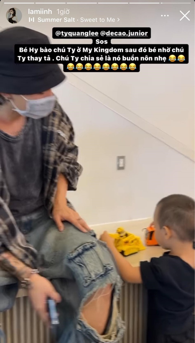 Trong những khoảnh khắc được Lâm Minh chia sẻ, Ty Quang Lê không chỉ đưa bé Hy đi chơi, mua đồ chơi mà còn thay bỉm cho cháu. Lâm Minh còn mang cả con đến studio quay hình của người anh và nói đùa rằng Hy chính là thành viên mới của Ty Quang Lê team.