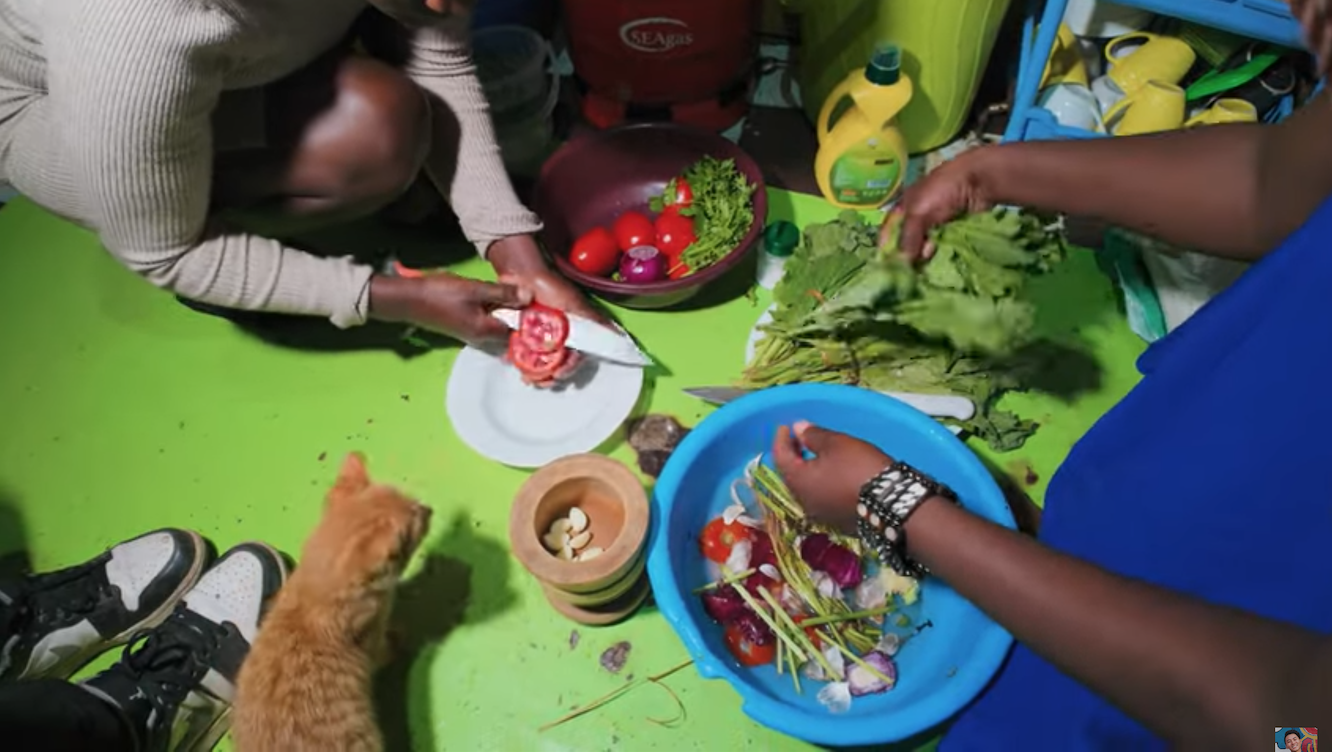 Bữa cơm được chủ nhân căn nhà nấu trong căn bếp nhỏ xíu, đầy những đồ đạc chất đống trông vô cùng chật chội. Tuy nhiên, họ lại vô cùng hiếu khách. Một bữa cơm tiếp khách nhưng cũng chỉ có những món như cá rán phủ sốt cà chua nấu chung hành tây và ớt chuông, 1 món rau xào, cá cơm chiên rồi cho cà chua, hành tây vào sốt cùng. Đặc biệt, không thể thiếu món lương thực được nấu từ bột bắp (nếu ở Việt Nam chúng ta ăn cơm thì ở đây họ sẽ ăn món này).