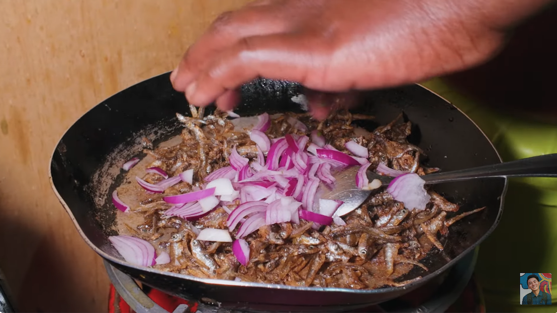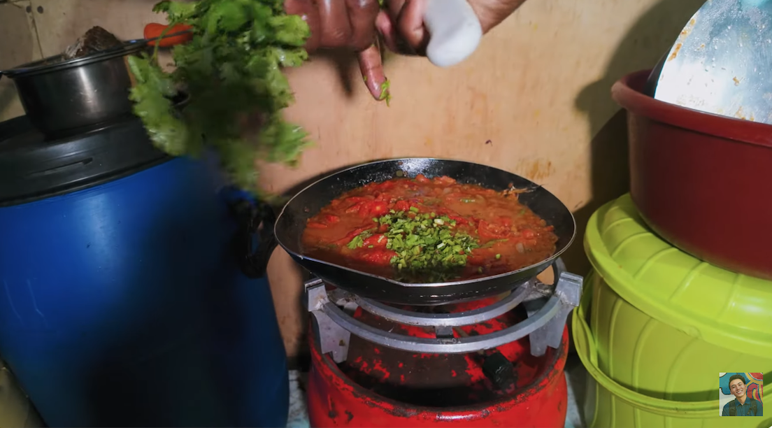 Cả quá trình nấu nướng của chủ nhà cũng là điểm nhấn khi gia đình chỉ có 1 chiếc chảo và cứ nấu món này xong lại rửa đi để nấu món khác. Hay bếp của họ lại đặt trực tiếp bên trên bình ga... Khoai Lang Thang cho biết, vì căn bếp khá nhỏ nên anh không cùng nấu nướng được mà chỉ đứng quay clip hoặc bật điện giúp họ để có ánh sáng nấu nướng.