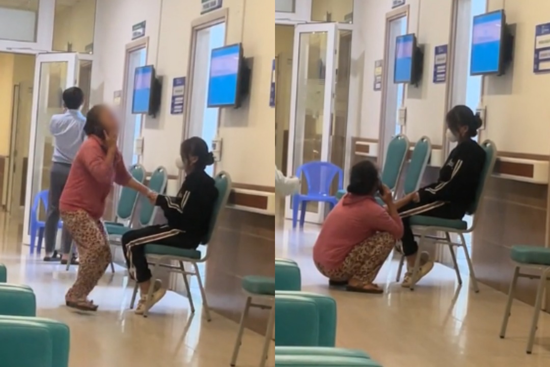 Theo dõi hình ảnh trong đoạn clip cho thấy, người mẹ nắm tay con gái ngồi thụp xuống sàn rồi đau đớn gọi điện thông báo tình hình cho chồng, "Con bé bị ung thư máu. Ông ơi xuống cứu con gái ông ơi. Bây giờ bác sĩ kêu chuyển lên đa khoa. Bệnh viện khám xong bảo chuyển lên viện đa khoa... Tiền bạc không có, biết làm sao bây giờ".