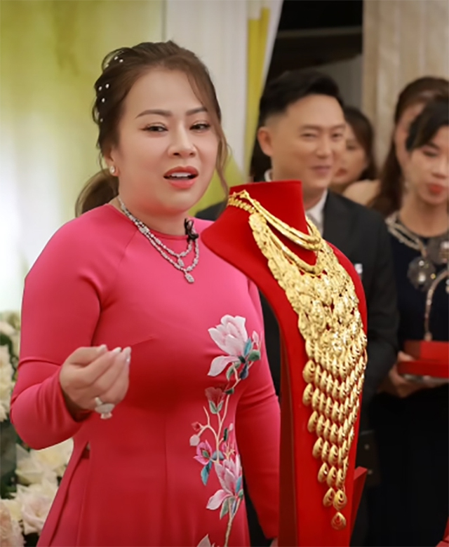 Mẹ cô dâu tuyên bố thêm, sắp tới bà sẽ tặng thêm cho vợ chồng con gái, con rể 1000 cây vàng để làm vốn. Hình ảnh cô dâu đeo vàng kín người được chia sẻ khắp MXH khiến bao người trầm trồ, tấm tắc về độ giàu có và hào phóng của bố mẹ cô dâu.