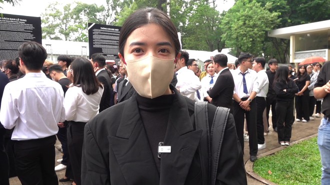 Một nữ sinh khác quê Hải Dương cũng có mặt tại Nhà tang lễ Quốc gia từ sáng sớm, cùng những người bạn xếp hàng với mong muốn được vào viếng Tổng Bí thư.