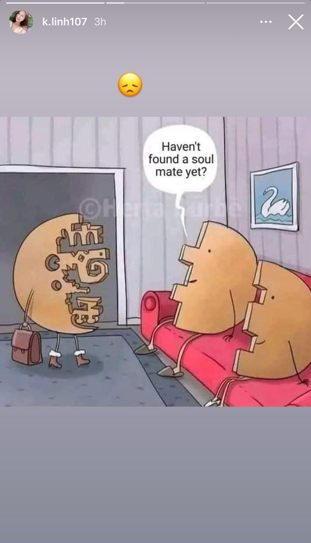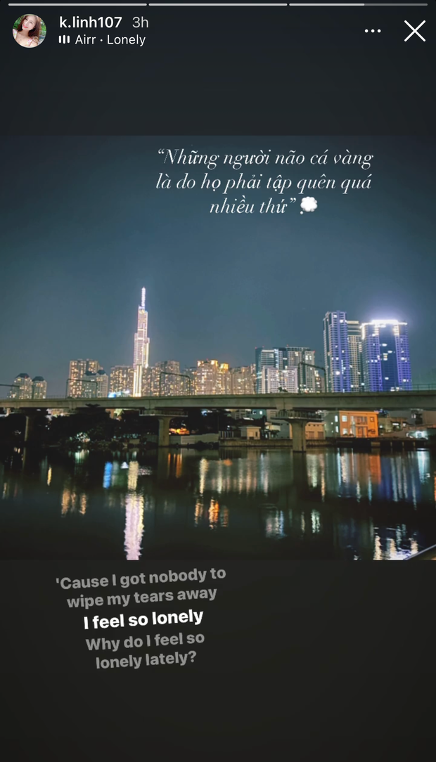Bên cạnh việc đăng ảnh, gái xinh còn chia sẻ một loạt story buồn liên quan đến những vấn đề như chưa tìm được "soulmate" thực sự, hay "những người não cá vàng là do họ phải tập quên quá nhiều thứ"... Tóm lại, hiện tại Khánh Linh vẫn thỉnh thoảng sẽ chia sẻ những dòng trạng thái "so deep" còn dân tình thì cứ tiếp tục đoán già đoán non.