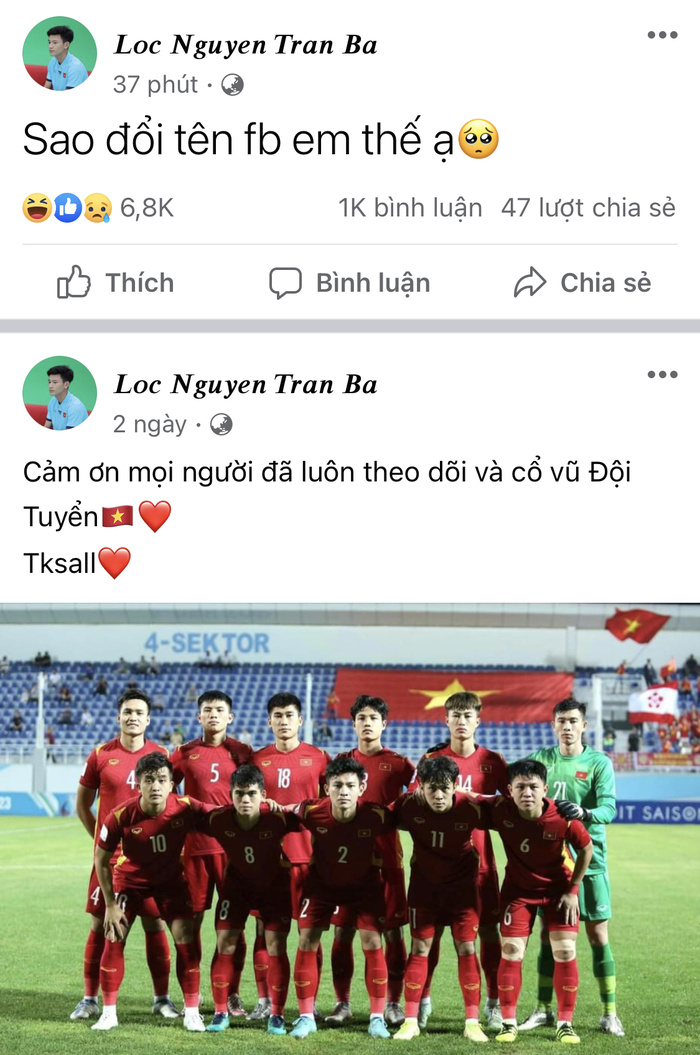 Facebook của Phan Tuấn Tài viết: “Sao đổi tên facebook của em thế ạ”.