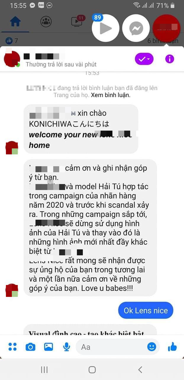 Được biết, rất nhiều khán giả đã tràn vào fanpage của nhãn hàng này để phàn nàn về Hải Tú, sau đó nhận được tin nhắn trả lời như sau: "Trong những campain sắp tới, chúng tôi sẽ dừng sử dụng hình ảnh của Hải Tú và thay vào đó là những hình ảnh mới nhất". Đồng thời theo đoạn tin nhắn này, đại diện nhãn khẳng định đây là chiến dịch được thực hiện vào năm 2020, trước khi scandal xảy ra.