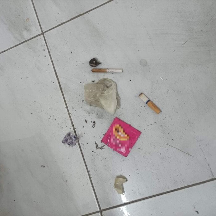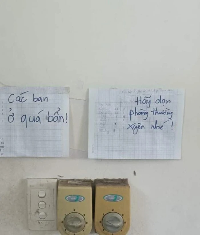 Dưới bài đăng là hình ảnh tàn thuốc lá và một vật lạ được cho là bao cao su của ai đó vứt bỏ ngay trên sàn nhà phòng ký túc xá sinh viên. Không chỉ như thế, "người khách" còn để lại hai mẩu giấy để dằn mặt "chủ nhà" rằng: "Các bạn ở quá bẩn!", "Hãy dọn phòng thường xuyên nhé!".