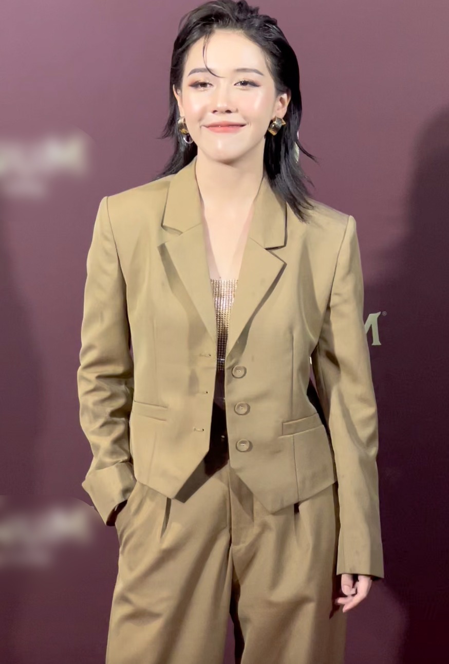 Cô nhuộm tóc màu vàng, tạo kiểu với mái bằng và uốn xoăn sóng buông lơi và thắt bím. Nữ YouTuber cũng chú trọng layout makeup khi xuất hiện tại sự kiện lần này. Kiểu trang điểm tông hồng nhạt, nhấn đậm phần mắt càng làm cho cô nàng trông cuốn hút và lạ mắt hơn thường ngày.