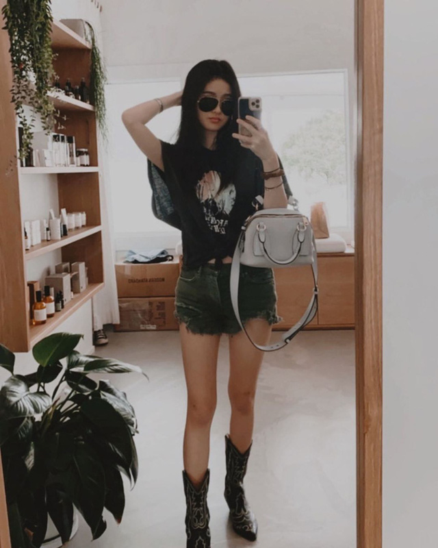 Ngoài đời, ái nữ nhà gia tộc giàu có chuộng trang phục nữ tính, trẻ trung nhưng không kém phần năng động.