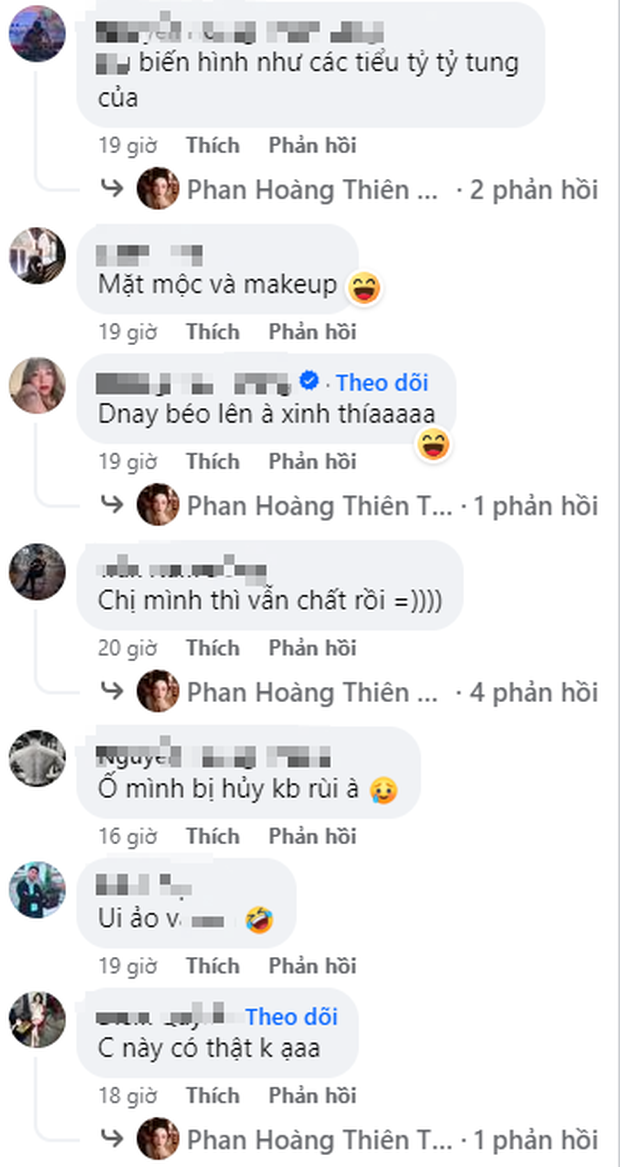 Tuy vậy, rất ít người được chứng kiến đằng sau những bức hình chỉn chu, lớp trang điểm sắc nét của cô nàng. Thực tế, khi không xuất hiện trước công chúng, Thiên Thy thường để mặt mộc, cho làn da thở sau những giờ trang điểm đậm. Đây là phương pháp giúp cô nàng cải thiện chất lượng da. Mới đây, gái xinh này đã mạnh dạn công khai quá trình biến hình, qua đó, fan thấy rõ được nhan sắc trước và sau trang điểm. Dù kém tươi tắn hơn thường nhưng thần thái và sự tự tin của cô vẫn nhận về nhiều bình luận tích cực.
