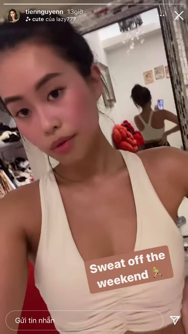 Tuy nhiên mới đây, netizen khá bất ngờ trước một Tiên Nguyễn hoàn toàn lạ lẫm. Cụ thể trong story tập tành cuối tuần, ái nữ nhà họ Nguyễn mặc đồ tập cực kì bình thường, buộc tóc đơn giản và gương mặt mộc mạc không hề mang 7749 lớp trang điểm như thường thấy.