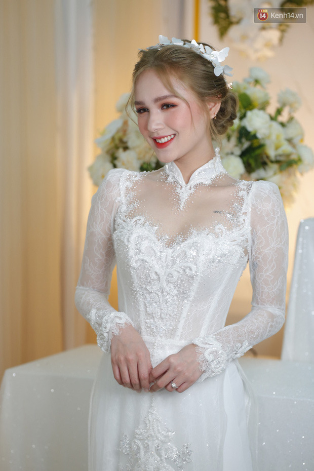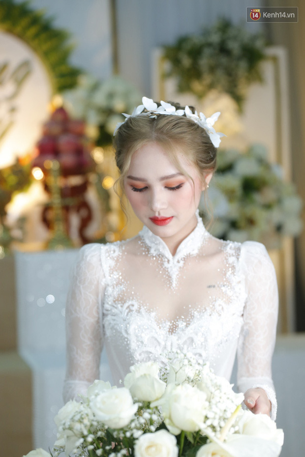 Sáng nay (14/11), lễ rước dâu sẽ được diễn ra. Xuất hiện trong ngày trọng đại, Xoài Non khiến bất kì ai đều phải xuýt xoa, trầm trồ vì quá đỗi xinh đẹp trong bộ áo dài trắng cách tân. Cô nàng tiếp tục giữ vững phong độ nhan sắc, quả không hổ danh hot girl đình đám Instagram nhé!