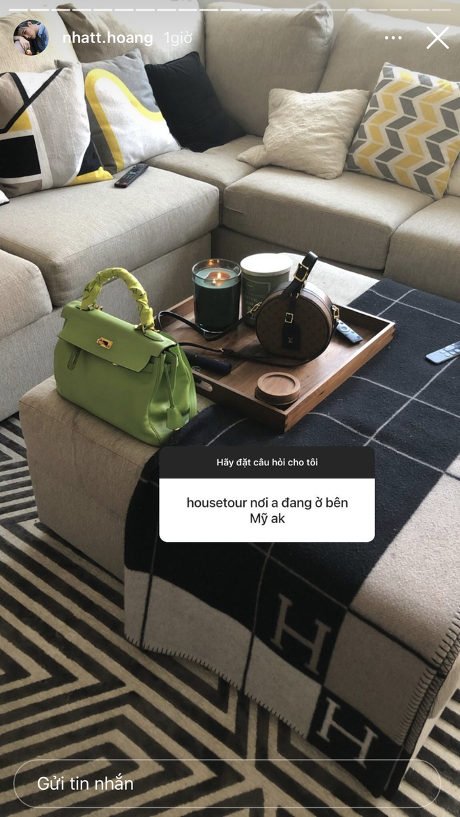 Theo dõi Instagram của Nhất Hoàng, nhiều người thường choáng ngợp trước những màn sắm hàng hiệu, cụ thể là túi xách của cậu bạn. Mới đây, thiếu gia tiếp tục gây chú ý khi khoe nhẹ vài tấm ảnh về nơi ở hiện tại bên Mỹ theo đề nghị của một dân mạng ở phần hỏi đáp.