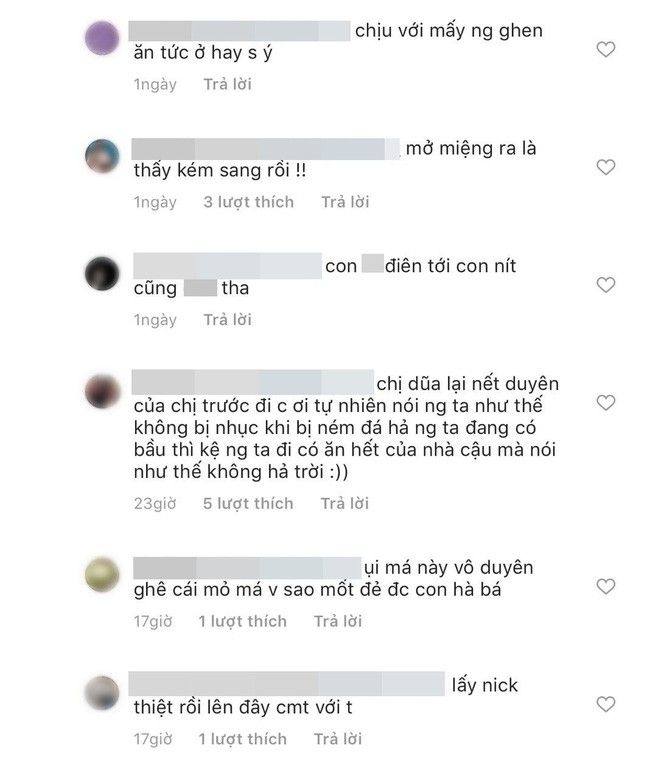 Những tưởng cứ bình yên qua cuộc sống của riêng mình là được, thế nhưng anti-fan vẫn chẳng tha cho cô. Chỉ đơn giản là khoe vài bức hình selfie của mình, không động chạm đến bất cứ ai mà có kẻ còn vào tận bài biết comment "khẩu nghiệp", thậm chí còn động chạm đến em bé trong bụng chưa chào đời.