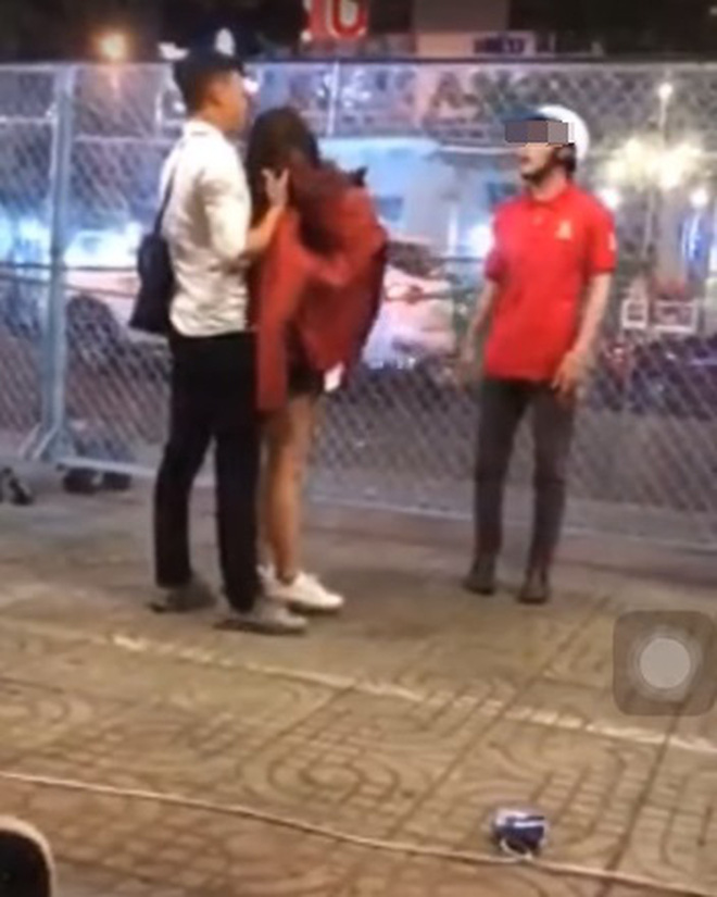 Không hề có biểu hiện chột dạ hay hối lỗi, cô nàng kia tỏ ra khá khó chịu. Trong lúc giằng co, cô gái thậm chí còn lột chiếc áo khoác ném trả rồi tát mạnh vào mặt cậu thanh niên và sẵng giọng: "Có thấy chỗ này đông người không?".