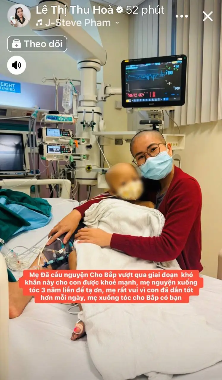 Chị Hòa thường xuyên cập nhật hành trình của con từ giường bệnh, nơi bé Bắp gầy yếu nhưng ánh mắt vẫn lấp lánh niềm sống. Có lúc, bé đáp ứng tốt, khiến nhiều người tin vào “phép màu”.