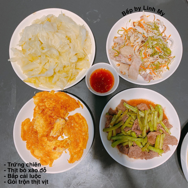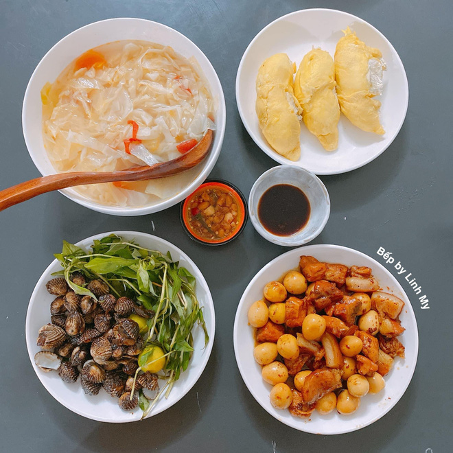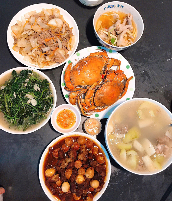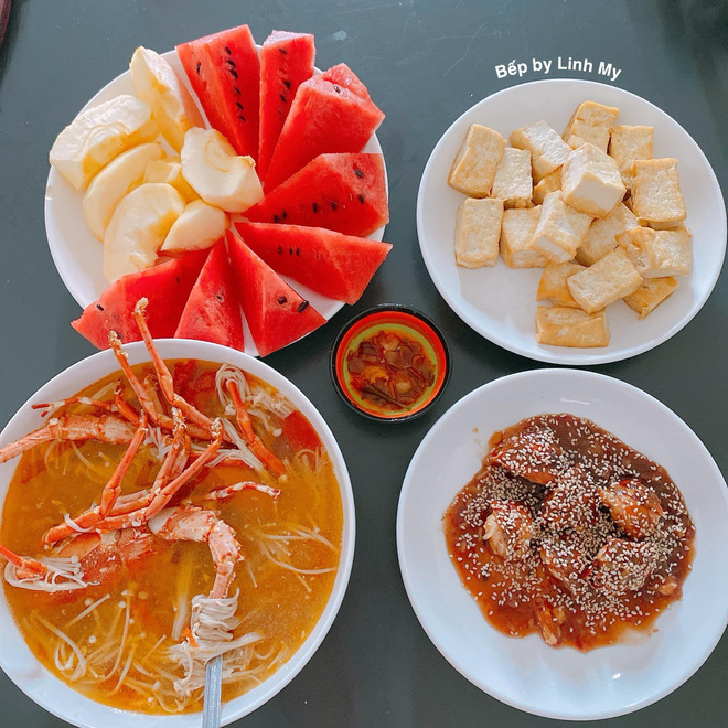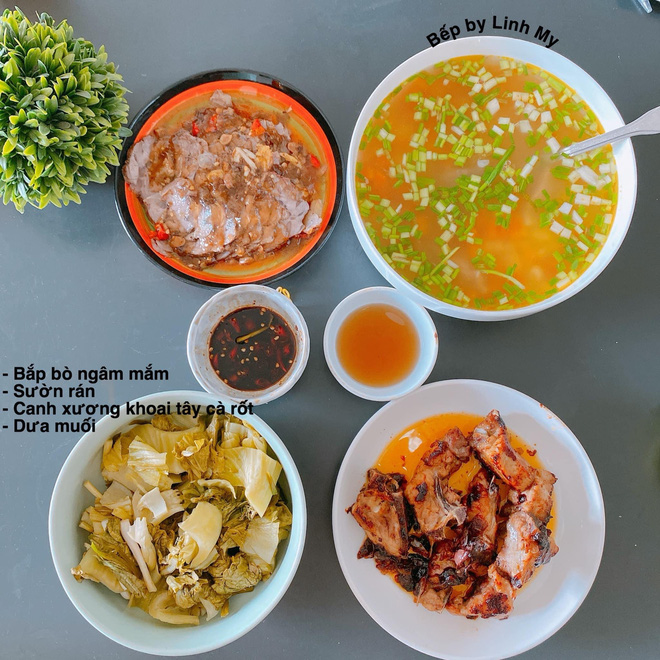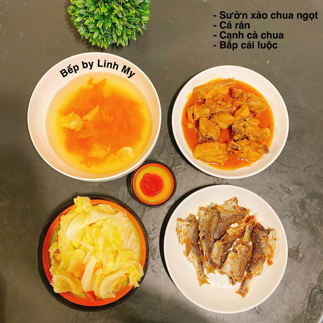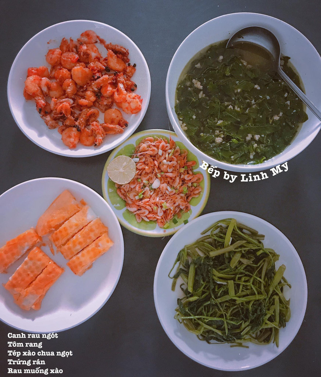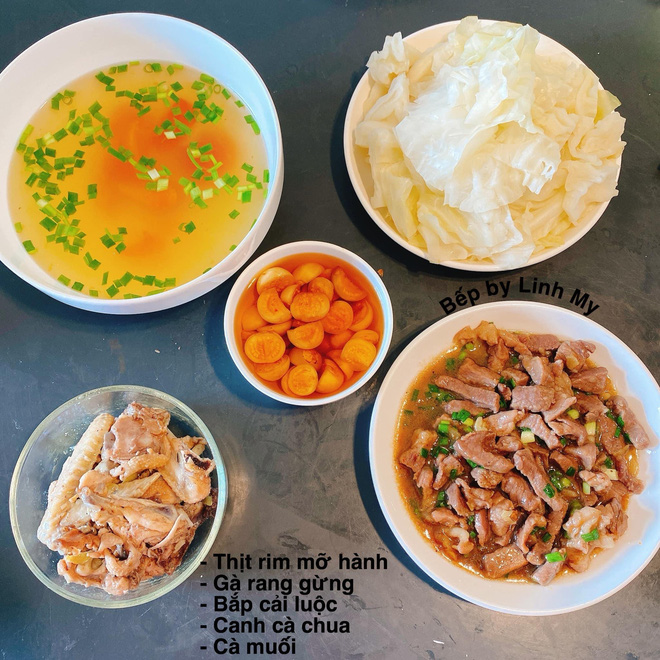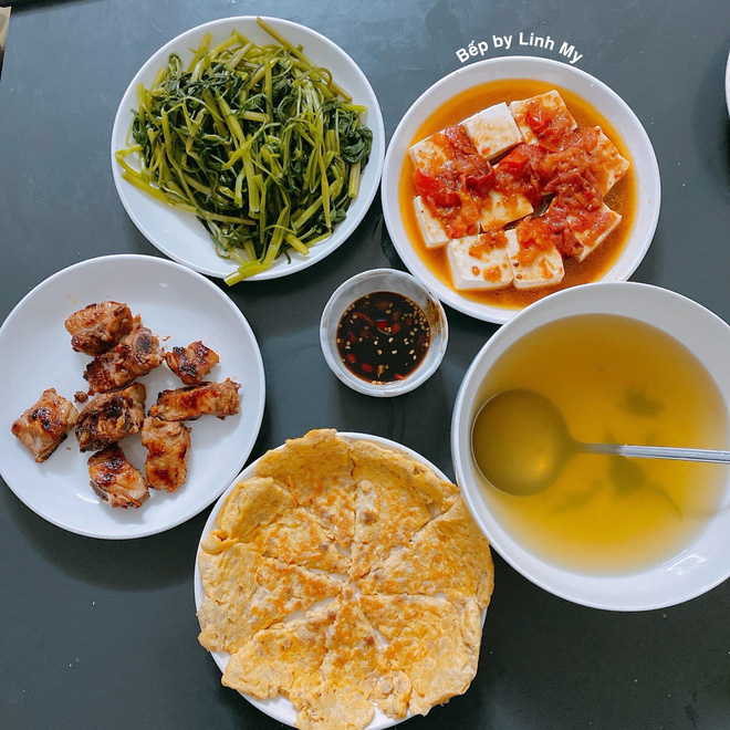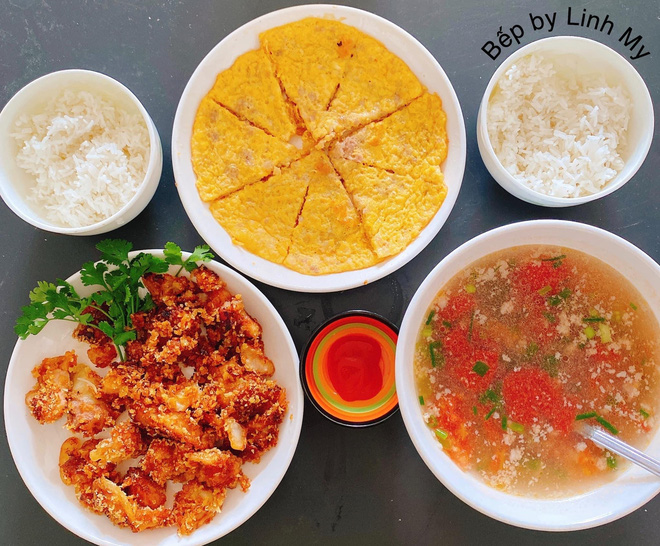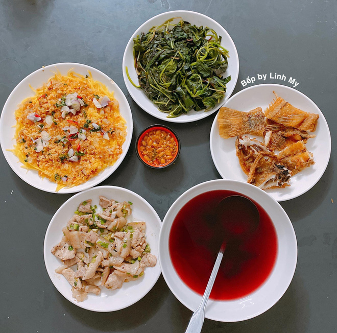 Mới đây, vợ của vlogger Huy Cung là Mỹ Linh cũng khiến dân tình bấm like mỏi tay khi khoe những mâm cơm gia đình do chính mình là bếp trưởng. Những bữa cơm không quá cầu kì nhưng rất đầy đủ, ngon mắt và biết, người nấu cũng đảm đang, chịu khó và dụng công không ít đấy!