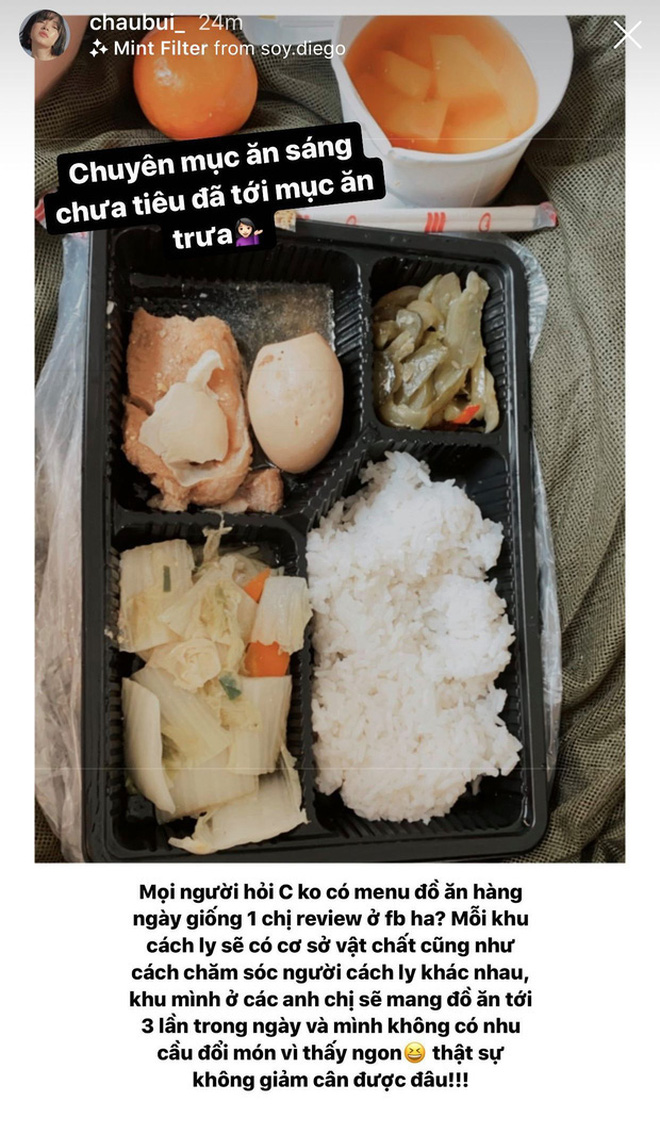 Đặc biệt, "nhật ký cách ly" của Châu Bùi hiện tại gần như một "món ăn tinh thần" đối với một bộ phận công chúng. Hằng ngày, cô nàng sẽ cập nhật tình hình của mình trong khu cách ly từ bữa ăn, giấc ngủ đến những sự kiện đặc biệt. "Cảm giác giống đi quay phim", "Ăn đủ chất hơn ở nhà", "Được bạn cùng phòng tặng đồ ăn suốt", "Ngày 8/3 đặc biệt nhất"... là những gì Châu Bùi cảm nhận được trong khoảng thời gian này. Có thể nói, những gì cô nàng đang làm đã truyền cảm hứng tích cực cho rất nhiều người, động viên họ lạc quan và cố gắng vượt qua thời kỳ khủng hoảng vì dịch bệnh này.