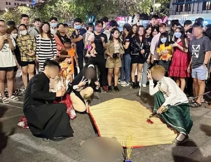 01/11/2022 14:49Nhóm bạn đắp chiếu giả chết, thắp nhang nghi ngút khói ở phố đi bộ dịp Halloween gây phản cảm