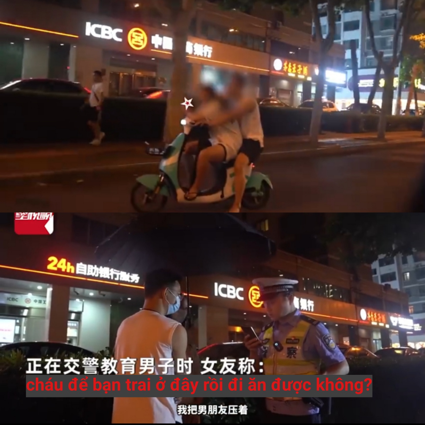 Sau khi bị cảnh sát chỉ ra lỗi sai, cô gái lập tức nhận lỗi nói: “Phạt bao nhiêu tiền chú nói đi cháu nộp, giờ cháu muốn đi ăn cơm.”. Vì cô gái sinh năm 2003 còn chưa thành niên nên cảnh sát đã nói chuyện với người yêu cô ấy (sinh năm 1989).