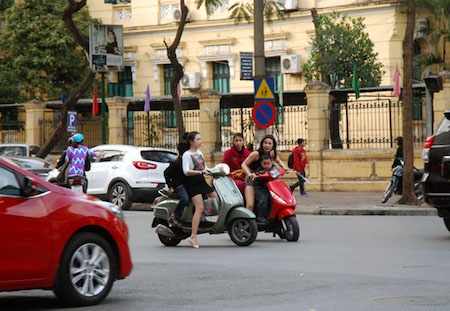 Tuy nhiên không chỉ gây chú ý bởi trang phục, mà một bộ phận giới trẻ còn khiến người ta phải ngoái lại nhìn khi vô tư không đội mũ bảo hiểm, chở ba và thậm chí là vượt đèn đỏ, đi ngược chiều...