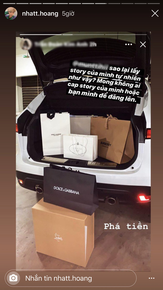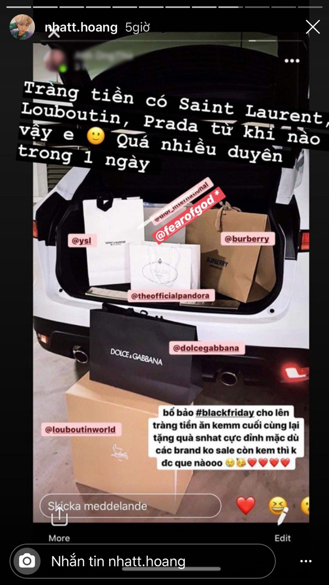 Cụ thể thì 1 lần, Nhất Hoàng đăng story khoe thành quả shopping toàn hàng hiệu nhìn là biết tốn bộn tiền. Sẽ chẳng có gì đáng nói nếu như không xuất hiện vài ba người "mượn" ảnh của rich kid và up lên với caption rất lạ lùng, ngộ nghĩnh, kiểu: "Bố bảo Black Friday cho lên Tràng Tiền ăn kem cuối cùng lại tặng quà sinh nhật cực đỉnh mặc dù các brand không sale còn kem thì không được que nào".