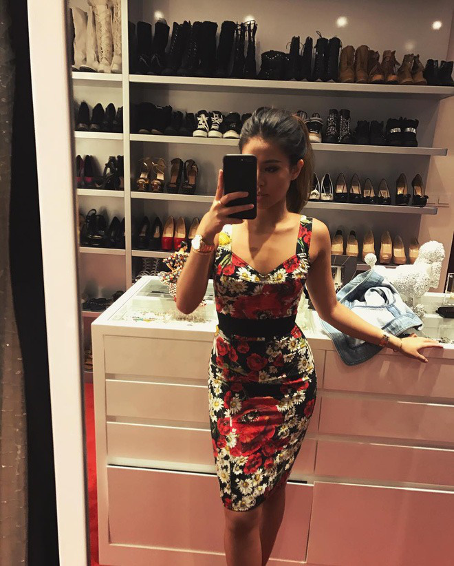 Ái nữ nhà tỷ phú dường như có một niềm đam mê bất tận cho những đôi giày. Thú vui xa xỉ của cô được kiểm chứng bằng tủ giày siêu to khổng lồ lấp ló mỗi đợt chụp ảnh khoe dáng trong phòng thử đồ của cô nàng.