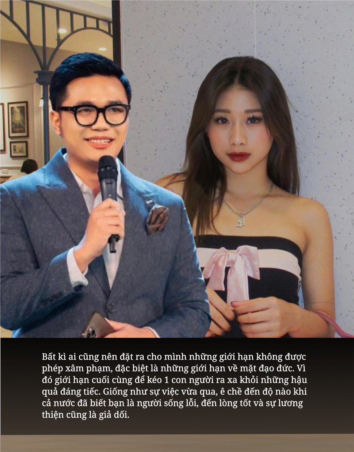 - “Đây là vấn đề đạo đức chứ không phải ủng hộ hay không ủng hộ. Làm sai thì người khác có quyền lên án, chứ đừng dung túng lối sống dối trá, xong bị phát hiện thì 1-2 bài xin lỗi và lần sau lại tái diễn nữa”.