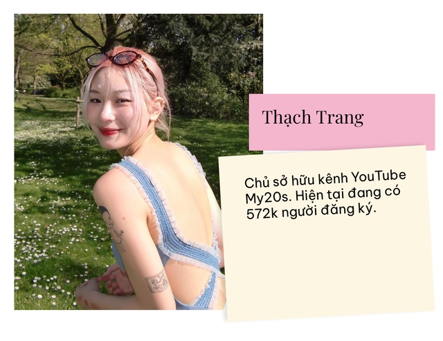 Kênh YouTube My20s của Thạch Trang có tới hơn 570 nghìn người đăng ký. Giống với những “nàng thơ”, Thạch Trang cũng chọn cách ghi lại toàn bộ mọi thứ qua lăng kính của mình dù đó là trải nghiệm vui, buồn, mới lạ. Nữ du học sinh cũng thoải mái trong việc chia sẻ quan điểm sống, hay các kinh nghiệm du học.
